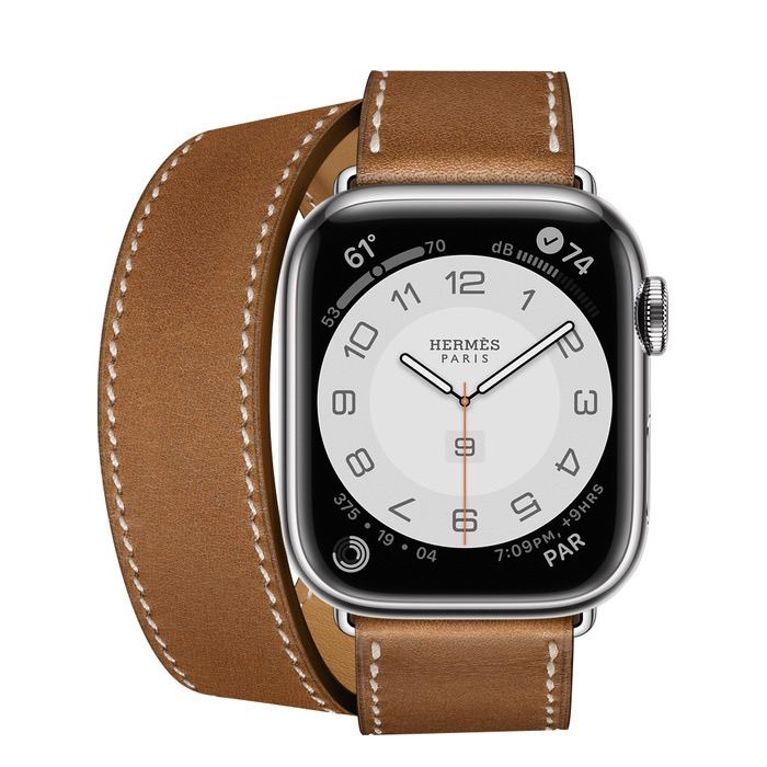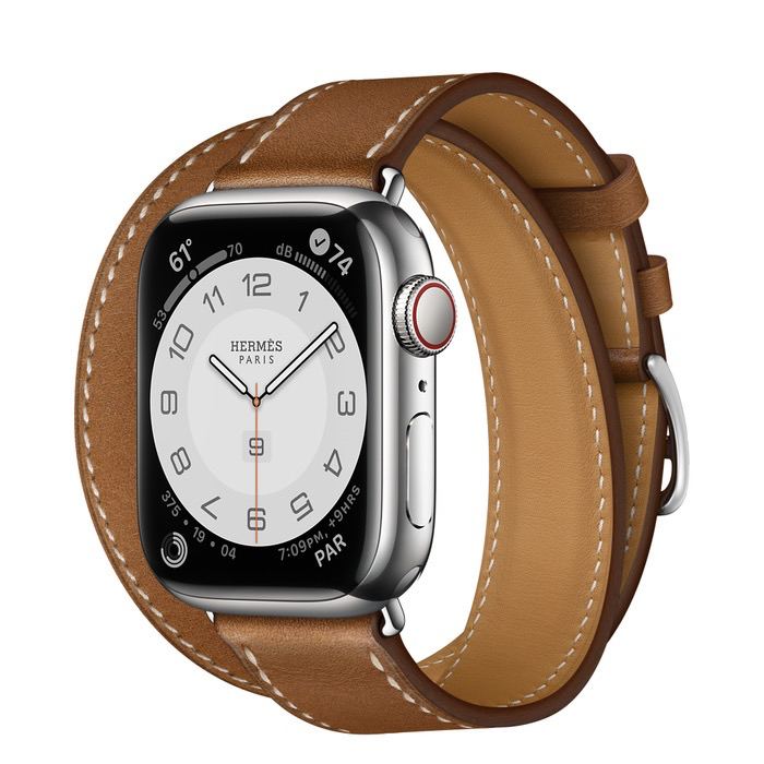 Часы Apple Watch Hermès Series 7 GPS + Cellular 41mm Silver Stainless Steel Case with Double Tour Fauve