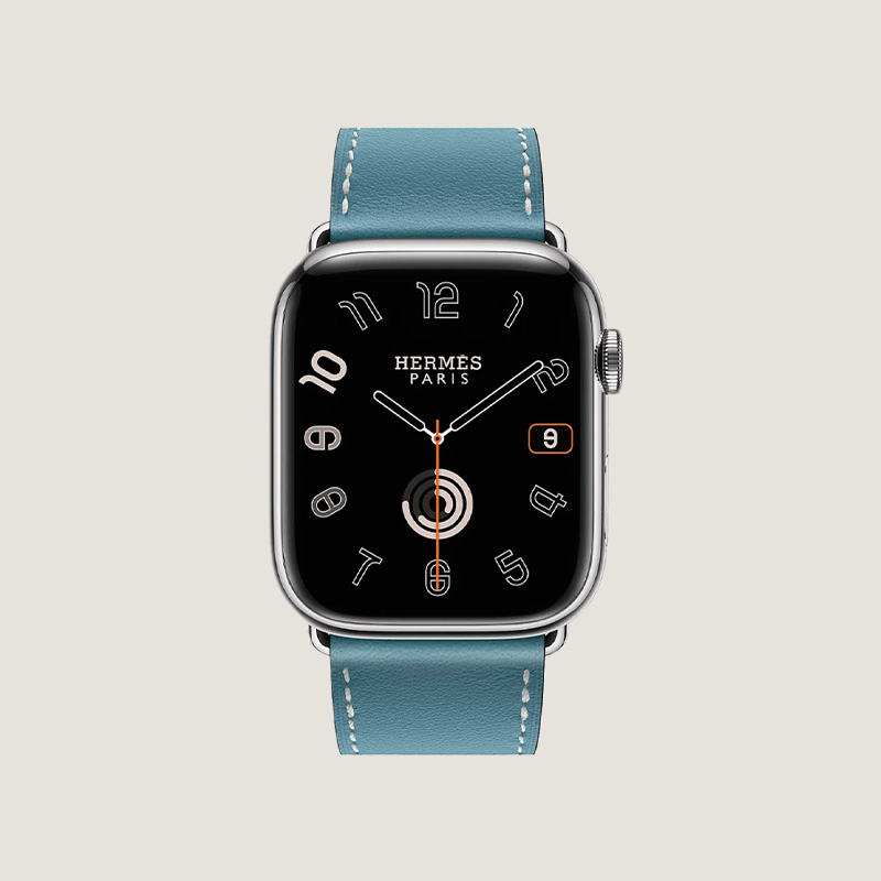 Apple Watch Hermes 11, Cellular 46mm Silver Titanium Case, Bleu Jean Swift Leather Single Tour. Купить Apple Watch Series 11 Hermes в Москве. Оригинальные Apple Watch 11 Hermes