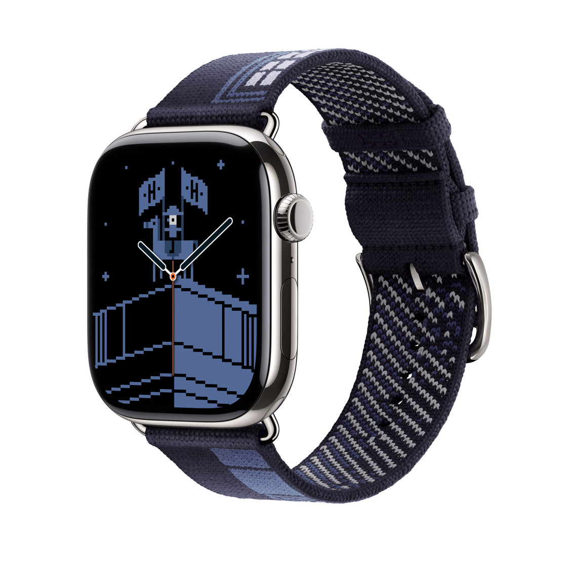 Apple Watch Hermes 11, Cellular 46mm Silver Titanium Case, Bleu Nuit Faubourg Party. Купить Apple Watch Series 11 Hermes в Москве. Оригинальные Apple Watch 10 Hermes