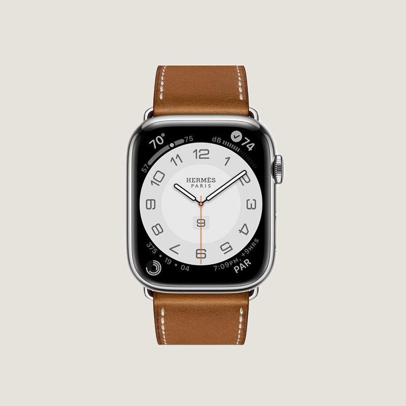 Apple Watch Hermes 11, Cellular 46mm Silver Titanium Case, Fauve Barénia Leather Single Tour Deployment Buckle. Купить Apple Watch Series 11 Hermes в Москве. Оригинальные Apple Watch 11 Hermes