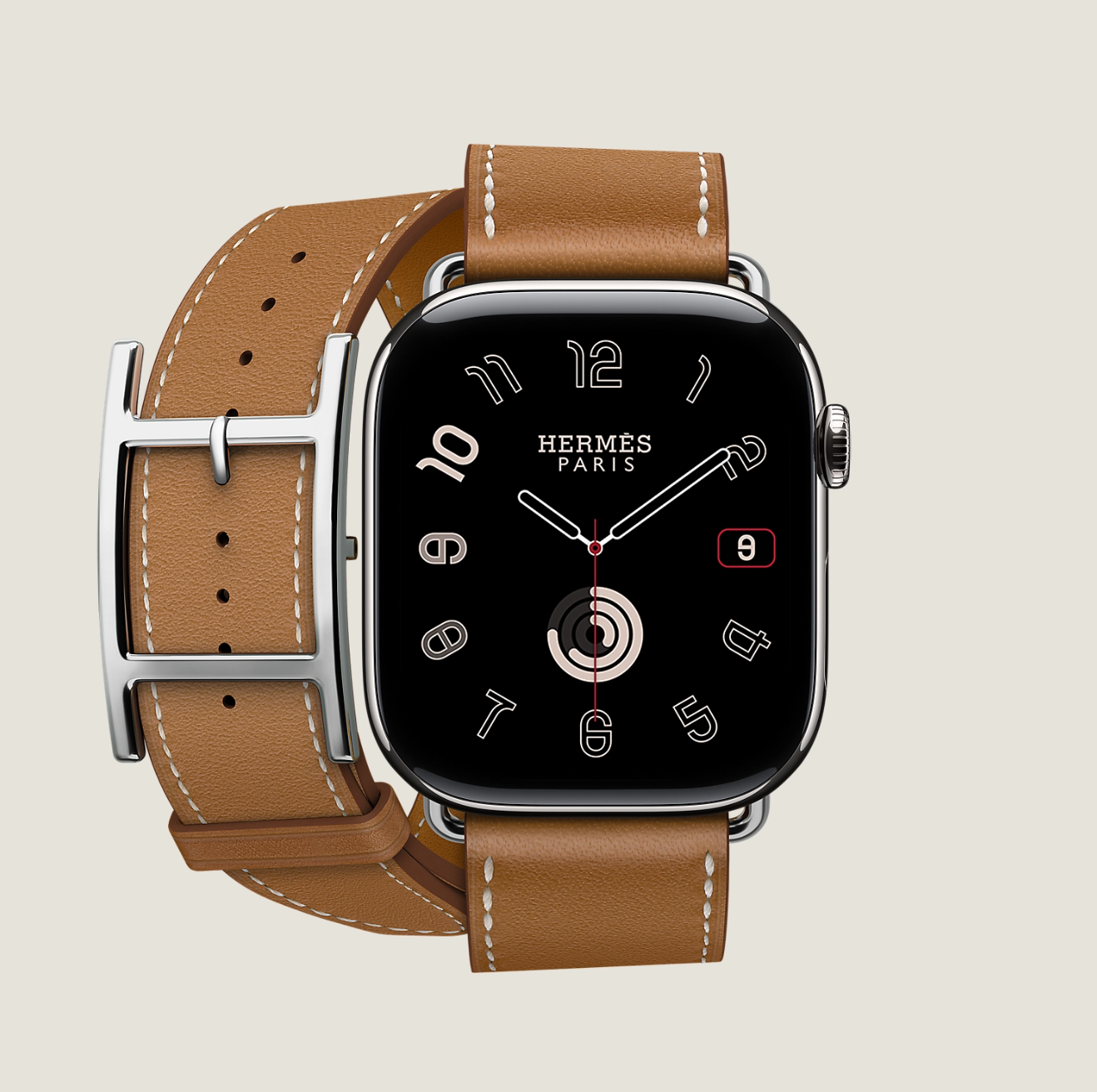Apple Watch Hermes 11, Cellular 46mm Silver Titanium Case, Gold Hapi Double Tour. Купить Apple Watch Series 11 Hermes в Москве. Оригинальные Apple Watch 11 Hermes