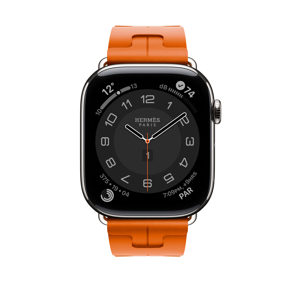 Apple Watch Hermes 11, Cellular 46mm Silver Titanium Case, Orange Kilim Deployment Buckle. Купить Apple Watch Series 11 Hermes в Москве. Оригинальные Apple Watch 11 Hermes