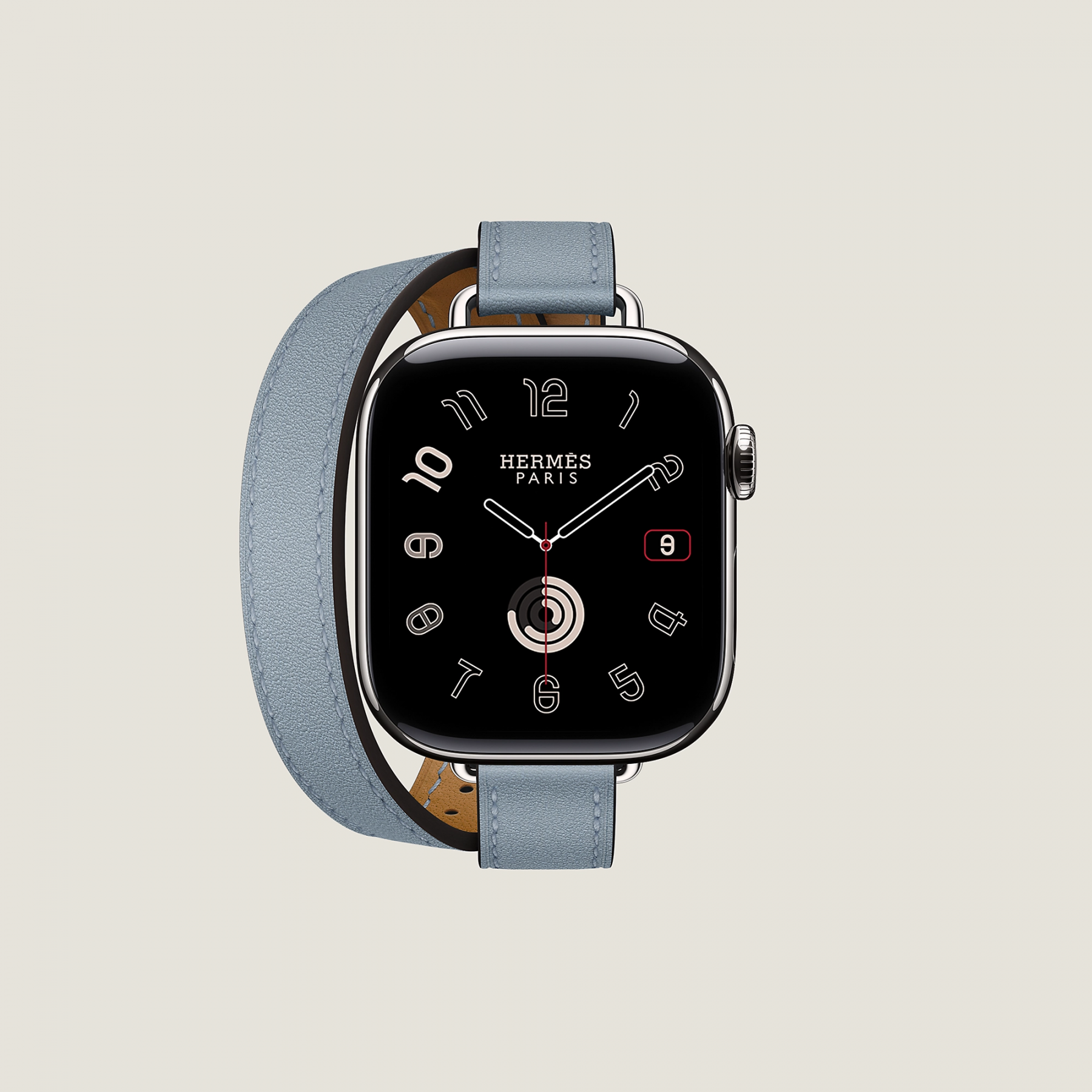 Apple Watch Hermes 11, Cellular 42mm Silver Titanium Case, Bleu Lin Attelage Double Tour. Купить Apple Watch Series 11 Hermes в Москве. Оригинальные Apple Watch 11 Hermes