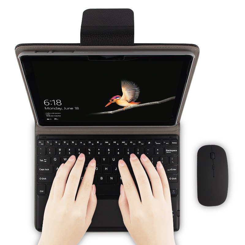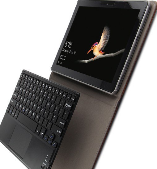 Фирменная съёмная беспроводная Bluetooth-клавиатура с русскими символами или без на ваш выбор + чехол(эко-кожа) - для планшетов Microsoft Surface Go, Go 2, Go 3, Go 4