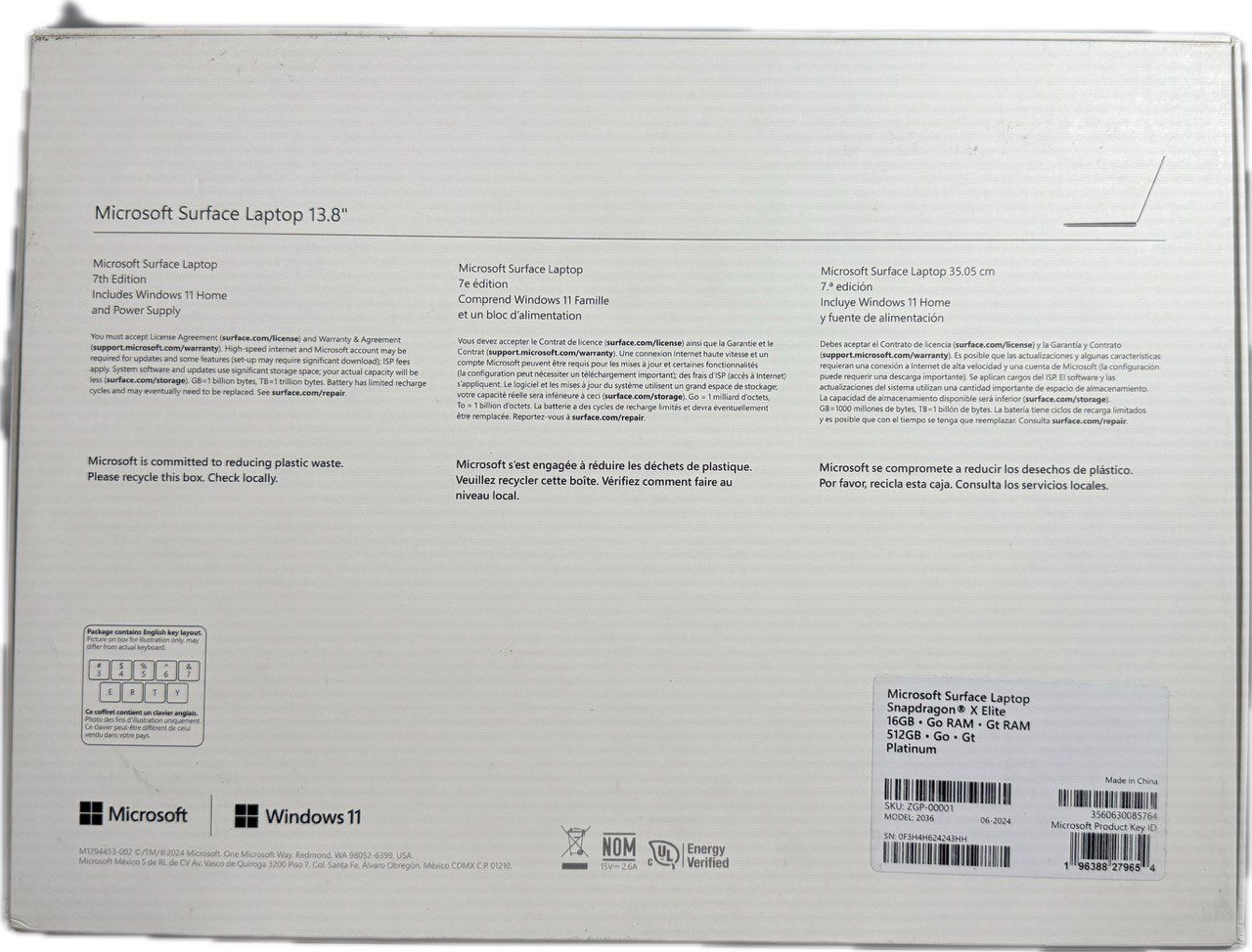 | Комплектация | Ноутбук Microsoft Surface Laptop 7, зарядное устройство, инструкция по эксплуатации |