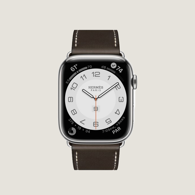 Single Tour. Классический дизайн Hermès. Пряжка напоминает ремни седла, а новое крепление Attelage к корпусу - еще один намек на конное наследие Hermès. Доступен в различных цветах с серебристыми корпусами из нержавеющей стали двух размеров. Ремешки других цветов продаются отдельно.