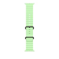 Ремешок Ocean Band изготовлен из высокоэффективного эластомера с трубчатой геометрией, что позволяет ему растягиваться и идеально прилегать даже к гидрокостюму. Коррозионностойкая титановая пряжка и регулируемая петля надежно фиксируют ремешок во время занятий водными видами спорта на высокой скорости. Для дополнительной длины удлинительный ремешок продается отдельно — идеально, если вам нужна дополнительная длина, чтобы носить ремешок поверх гидрокостюма.