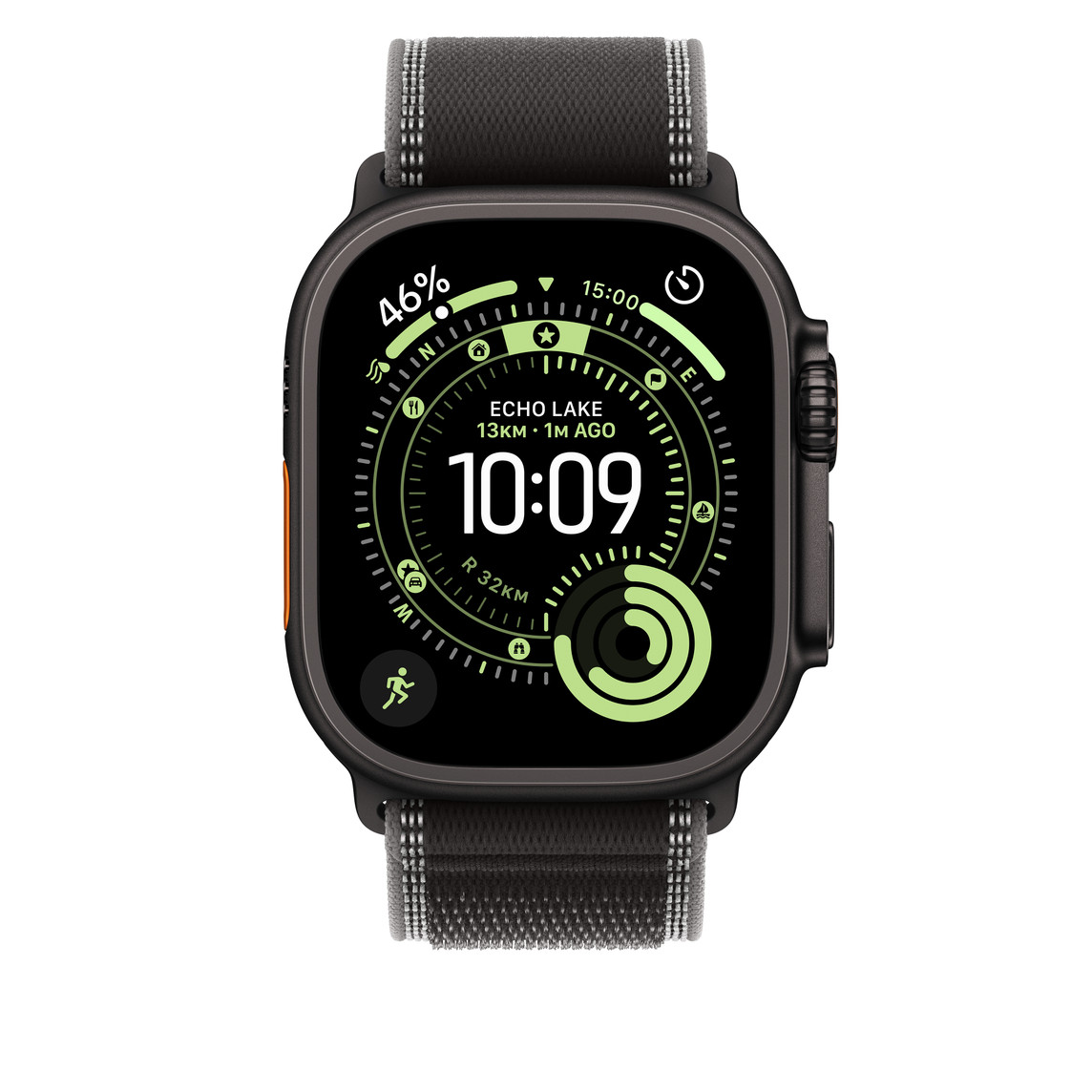 Ультратонкая и легкая петля Trail Loop изготовлена из нейлонового плетения, образующего мягкую ленту с повышенной эластичностью для удобной посадки. Ремешок плавно регулируется с помощью удобного язычка для быстрой регулировки на ходу. Эта полоса углеродно-нейтральна. Trail Loop содержит 32% переработанных материалов по весу, 100% производственной электроэнергии покрывается экологически чистой энергией, а 50% или более всех углеродно-нейтральных продуктов Apple Watch доставляются без самолетов.