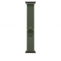 Ультратонкая и легкая петля Trail Loop изготовлена из нейлонового плетения, образующего мягкую ленту с повышенной эластичностью для удобной посадки. Ремешок плавно регулируется с помощью удобного язычка для быстрой регулировки на ходу. Эта полоса углеродно-нейтральна. Trail Loop содержит 32% переработанных материалов по весу, 100% производственной электроэнергии покрывается экологически чистой энергией, а 50% или более всех углеродно-нейтральных продуктов Apple Watch доставляются без самолетов.